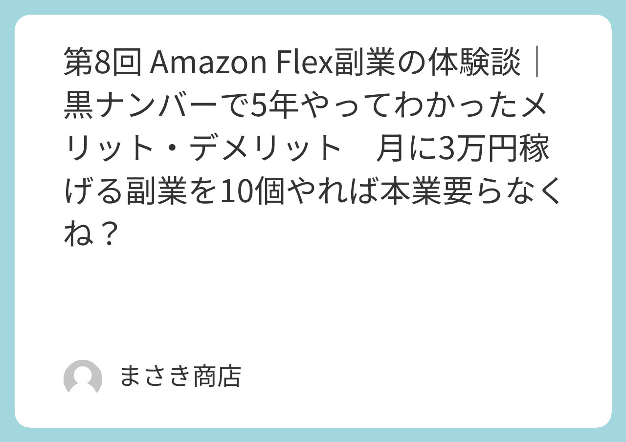 第8回 Amazon Flex副業の体験談|黒ナンバーで5年やってわかったメリット・デメリット 月に3万円稼げる副業を10個やれば本業要らなくね?
