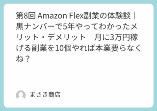 副業 第8回 Amazon Flex副業の体験談|黒ナンバーで5年やってわかったメリット・デメリット 月に3万円稼げる副業を10個やれば本業要らなくね? Amazon Flex副業の体験談|黒ナンバーで5年やってわかったメリット・デメリット 2025.09.25 副業
